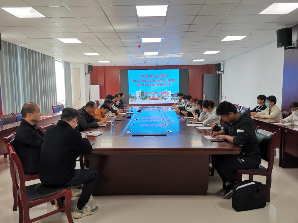 按照学校和学院相关文件精神及工作安排,化学化工学院于10月20日在化学化工学院会议室召开2022—2023学年第一学期期中教学信息员会议。会议由化学化工学院副院长王聪主持,化学化工学院党委副书记、院长卓馨、学院教学督导组成员、教研室主任、实训中心主任、教务员及全体教学信息员参加会议。