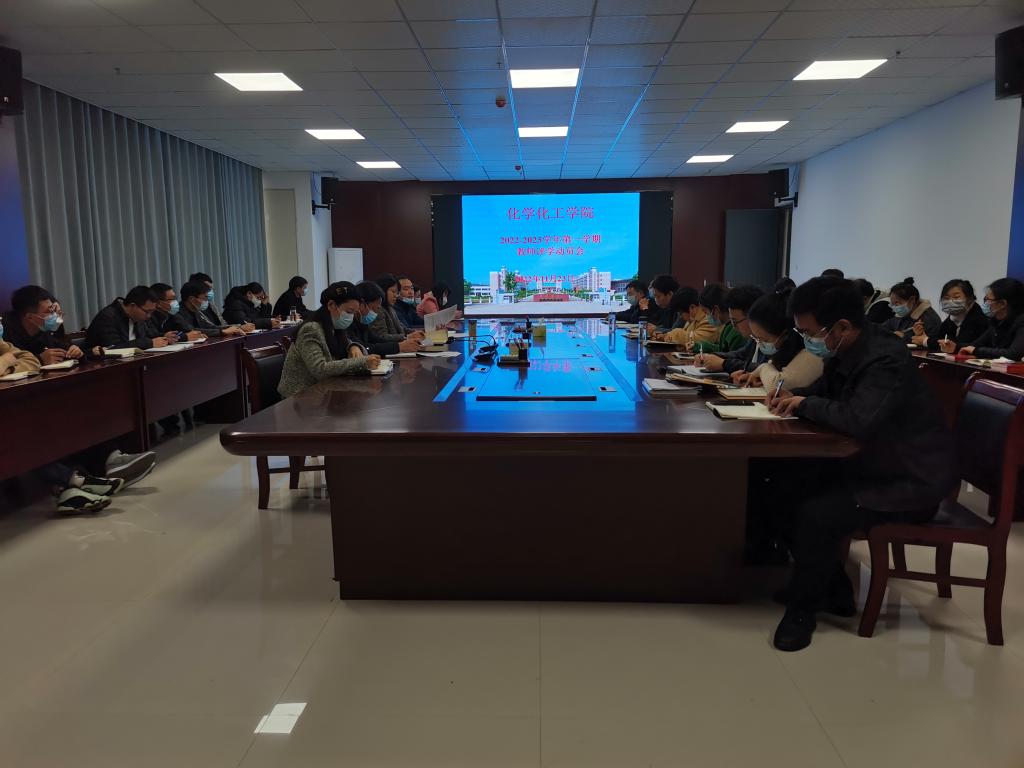 2022年11月23日,化学化工学院召开2022—2023学年第一学期教师评学动员与培训会,会议由化学化工学院党委副书记、院长卓馨主持,化学化工学院党委副书记(临时负责)史洪伟、党委副书记刘茜、副院长张克营及全体教职工参加。