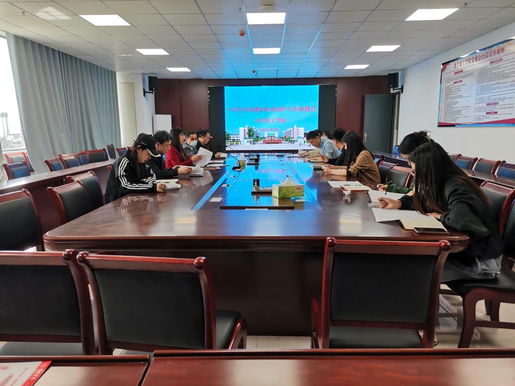 根据《宿州学院关于组织开展2023年全校学生劳动教育宣传周系列活动的通知》(教务处发〔2023〕33号)文件的要求,5月6日,化学化工学院在会议室召开了2023年学生劳动教育宣传周系列活动布置会。会议由化学化工学院党委副书记、院长卓馨主持,化学化工学院党委书记史洪伟、副院长王聪、张克营、副书记刘茜及相关教师参加。