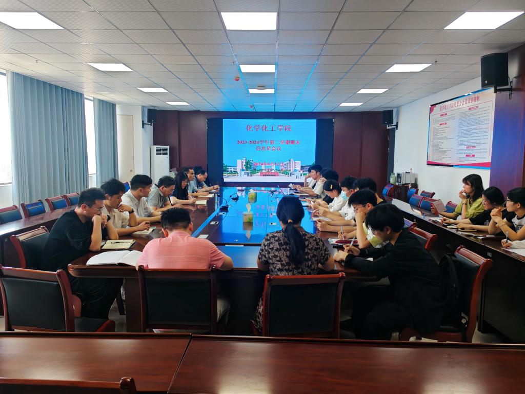 为进一步强化教学管理,不断提高学院教育教学质量,深入了解教学课堂情况,充分发挥学生在教学管理活动中的积极性,按照学校相关文件精神及工作计划安排,化学化工学院于6月12日在学院会议室召开2023-2024学年第二学期期末教学信息员会议。会议由化学化工学院副院长王聪主持,化学化工学院院长、学院教学督导组成员、教研室主任、实训中心主任、学生管理相关老师及全体教学信息员参加会议。