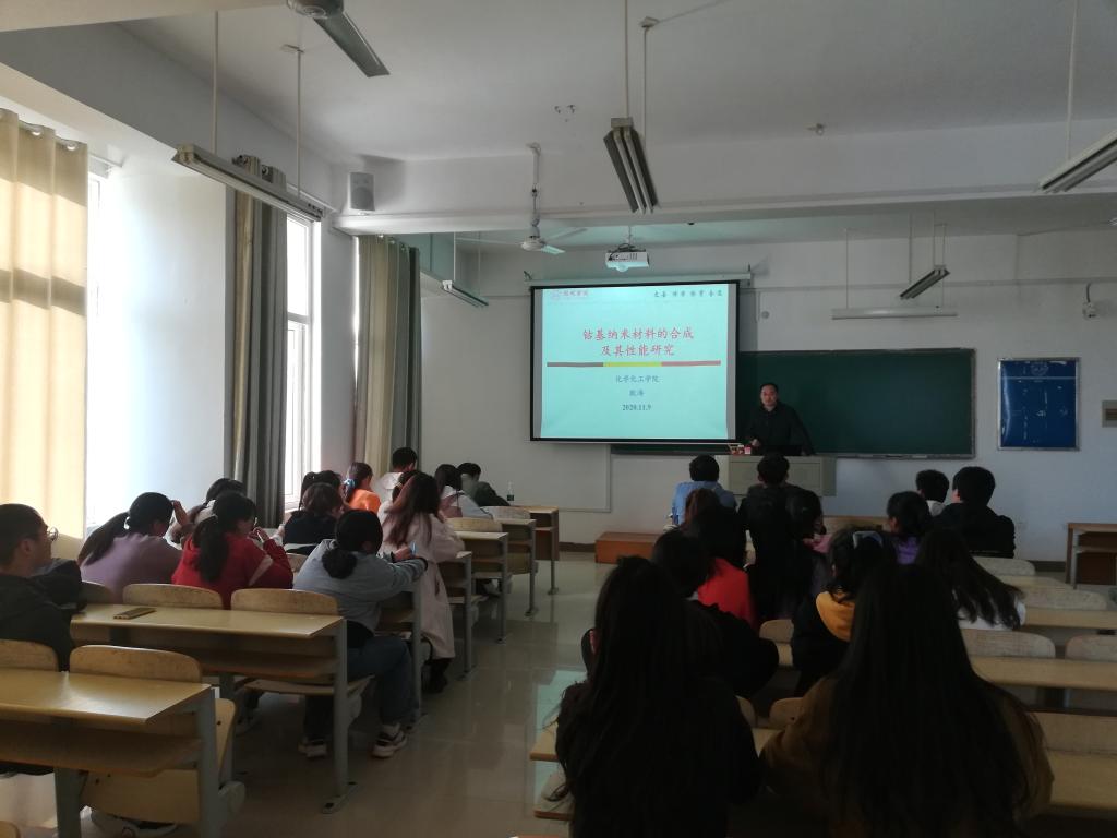 2020年11月9日下午15:00,化学化工学院耿涛教授在逸夫楼B223作了题为“钴基纳米材料的合成及其性能研究”的学术讲座。化工学院19应用化学专业学生参加。