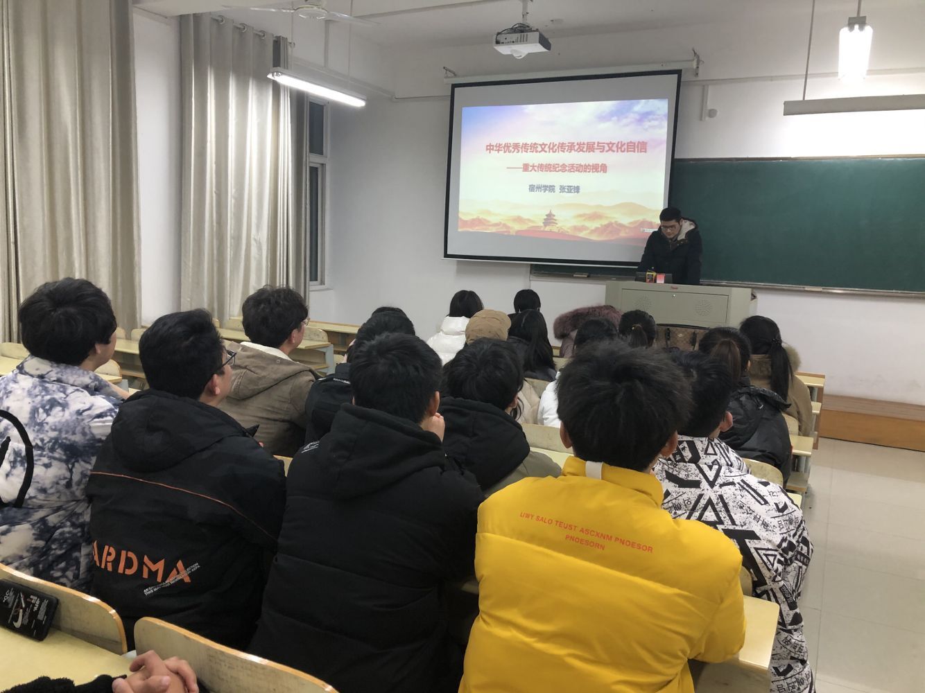 报告会上,张亚锋老师从中华优秀传统文化与文化自信、中华优秀传统文化的载体重大传统纪念活动、传承中华优秀传统文化坚定文化自信三个方面,从我国重大传统纪念活动的视角,阐述中华优秀传统文化的魅力,及其对大学生思政治教育的作用。讲座对同学们坚定文化自信,牢固树立社会主义核心价值观,传承好中华优秀传统文化具有积极的引导作用。