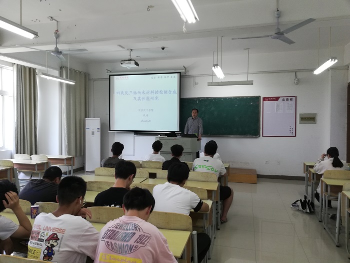 2022年5月20日上午9:00,化学化工学院耿涛教授在逸夫楼B213作了题为“四氧化三钴纳米材料的控制合成及其性能研究”的学术讲座,21新能源材料与器件专业同学参加了报告会。