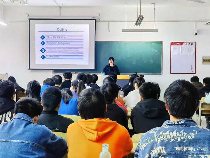 报告中,欧阳教授首先介绍了科研思维的概念及其在科研工作中的重要作用,然后以自己的一篇论文研究成果为例,从研究选题,到方案设计、开展实验、表征测试、结果与讨论、论文撰写,以及科研工作汇报等方面,作了详尽报告。欧阳教授特别强调科研思维在科研活动中的重要性,旨在培养大学生的科研意识与思维。报告时长90分钟,同学们全程兴致盎然,觉得受益颇深。