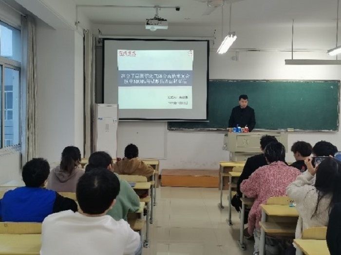 化工分离过程每年都消耗巨大的能源,占据了世界年度能耗的10~15%。为了缓解全球能源紧缺的问题,寻求绿色的分离方案,对 “碳达峰、碳中和” 目标的实现具有重要的推动作用。膜分离技术因操作简便、高效节能等特点在不同领域展现出了巨大的应用前景,开发高性能膜材料有助于为“双碳”目标的实现提供技术支持。本次讲座主要讲述了复合膜的构筑及其在气体分离方面的应用,包含研究背景、研究思路、制备方法及气体传递特性等部分,向参会学生详细阐述了科技论文从构思到制作完成的研究方法,对培养学生科学实验工作的开展具有指导意义。