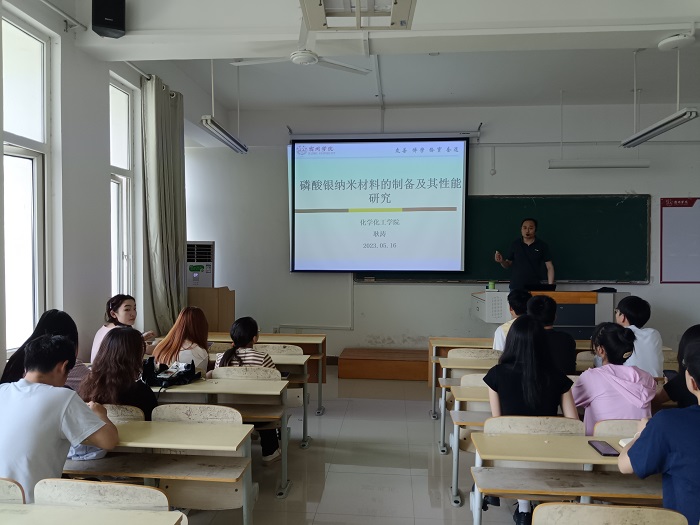 2023年5月16日上午10:05,化学化工学院教师耿涛在逸夫楼B311教室作题为“磷酸银纳米材料的制备及其性能的研究”的学术讲座,化学化工学院应用化学专业的学生参加了此次讲座。