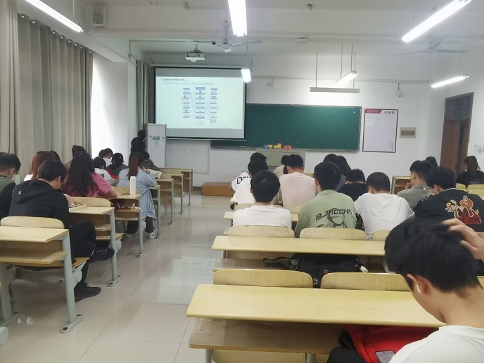 2023年5月30日上午10:00,化学化工学院季芹芹博士在逸夫楼B210开展题为“二氧化碳资源化利用”的学术讲座,我院2021级应用化学专业的学生参加了此次学术讲座。