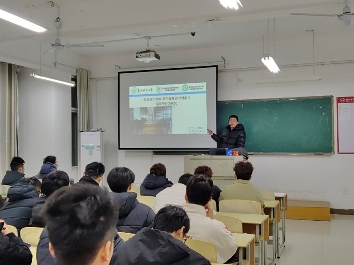 12月24日,傅海涛博士在逸夫楼B213为2023级过程装备与控制工程班级举作题为“超高填充木粉/聚乙烯复合材料的压缩流变行为研究”的学术讲座,介绍了利用自制压缩流变模具如何实现对超高填充木塑复合材料简单、高效的流变测试。