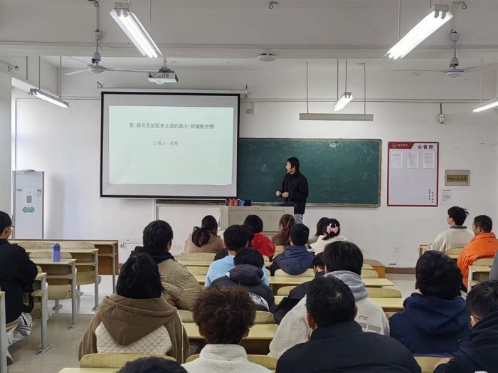 同日,杜军博士在逸夫楼B214为2023级新能源材料与器件专业的学生作题为“氮-膦双官能配体支撑的稀土-钯键配合物”的学术讲座,激发学生们对金属配合物相关知识的学习兴趣,拓宽了同学们新材料研究范围。