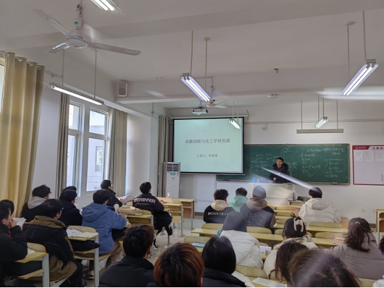 2023年12月20日上午10点,化学化工学院张德谨博士在逸夫楼B210作了题为“双碳战略与化工学科的发展”学术讲座,化学化工学院2022级过程装备与控制工程等班级参加了此次讲座。