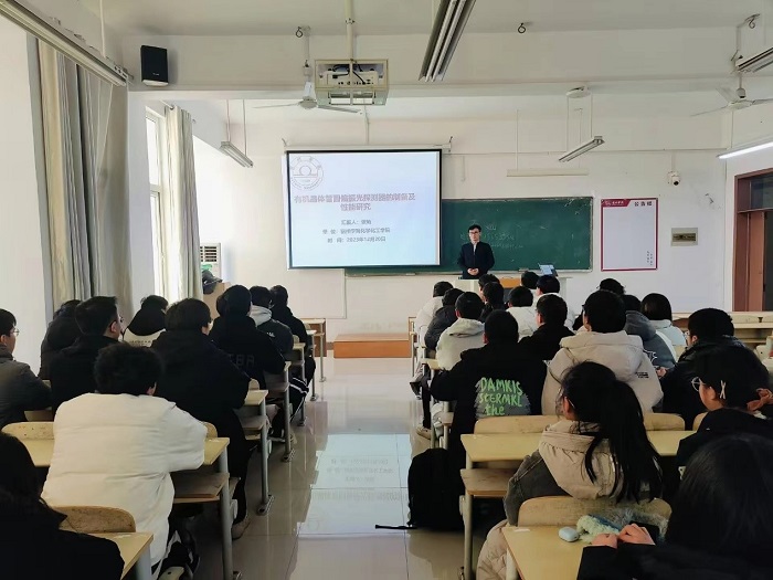2023年12月20日下午,化学化工学院张灿老师在逸夫楼B311教室作题为“有机晶体管圆偏振光电探测器的制备及性能研究”的学术报告,化学化工学院应用化学专业学生参加了此次报告。