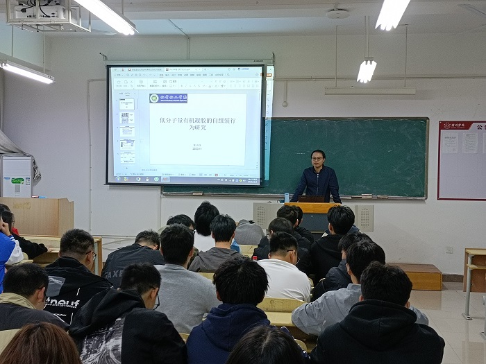 2023年11月09日19:00,化学化工学院张天任博士在逸夫楼B314作了题为“低分子量有机凝胶的自组装行为研究”的学术讲座,化学化工学院相关专业学生参加了讲座。