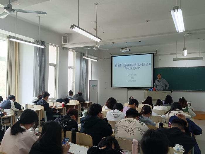 2024年4月22日上午10:05,化学化工学院教师耿涛在逸夫楼B217教室作题为“磷酸银复合纳米材料的制备及其催化性能研究”的学术讲座,化学化工学院22级应用化学专业的学生参加了此次讲座。