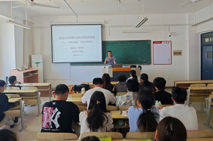 2024年5月16日上午10点,化学化工学院吴海洪博士在逸夫楼B310作了题为“电催化尿素氧化耦合氢能源制备”学术讲座,化学化工学院2022级化学工程与工艺等班级参加了此次讲座。