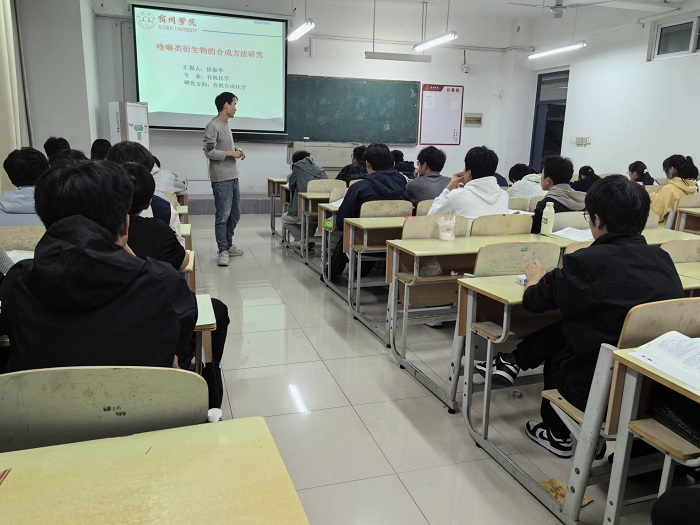 2024年10月29日下午5:00,化学化工学院徐振华博士在逸夫楼B223开展题为“喹啉类衍生物的合成方法研究”的学术讲座,24级化学工程与工艺学生及对有机合成研究感兴趣的部分本院学生参加了此次学术报告交流会。