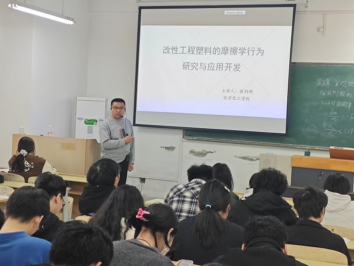 为使同学们深入了解工程塑料的改性制备、结构设计及功能化应用方面的基本知识,化学化工学院张利刚博士于2024年11月12日下午14时在逸夫楼B310开展了题为“改性工程塑料的摩擦学行为研究与应用开发”专题学术讲座,我院2022级化学与材料科学相关专业的同学听取了此次学术报告。