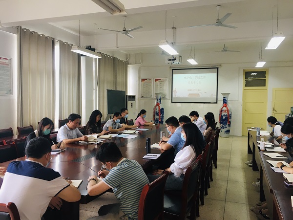 最后,史洪伟强调,化学化工学院全体教师要从党的百年非凡历程中汲取宝贵启示,坚持“学”“用”结合、学以致用,把学习党史同总结经验、观照现实、推动工作紧密结合起来,才能认真解决各种实际问题,落实好“我为师生办实事”。