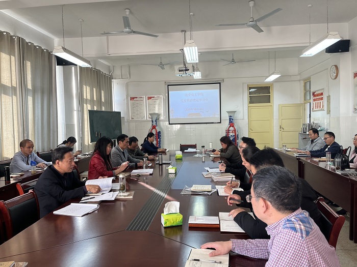 2021年10月13日下午,化学化工学院在实验楼A401会议室召开政治理论学习会,会议由化学化工学院党委副书记史洪伟主持,全体教师参加。