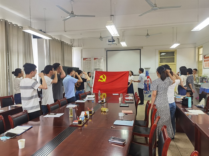 在中国共产党成立101周年之际,7月1日上午,化学化工学院党委组织全体党员在实验楼A401会议室开展“庆七一”系列活动,学生党员线上同步参加活动。
