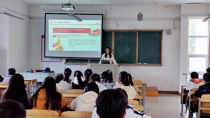 学院党委副书记史洪伟(临时负责),副书记、院长卓馨,副书记、纪委书记刘茜,分别做了《领悟思想真谛凝聚发展力量》《入党启蒙教育》《端正入党动机争做合格党员》学习报告。化工学院党政领导班子通过为新生讲授党课,增进新生对党的了解,加深对党的认识,明确入党目的,端正入党动机,激发新生追求政治进步的热情,积极引导学生向党组织靠拢,增强党在青年学生中的号召力和凝聚力。