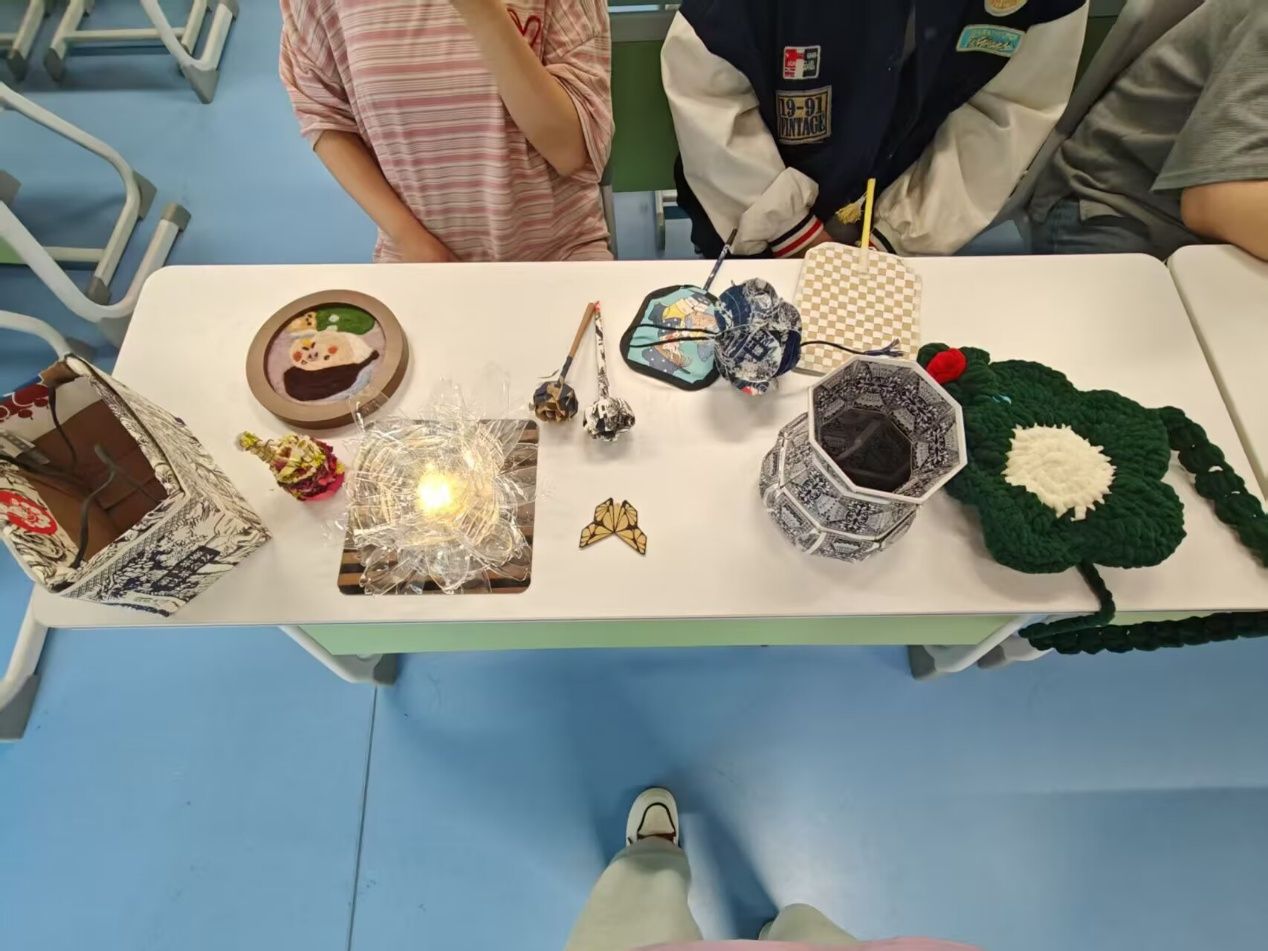 活动期间,参赛者利用废弃纸盒、塑料瓶、旧布料等材料,制作出兼具实用性与艺术性的手工艺品。作品涵盖装饰品、文具收纳、创意家居等多个类别,充分体现了“变废为宝”的核心理念。评选环节中,选手们通过现场讲解,阐释作品的环保理念与制作思路。评委从创意性、环保性、美观度三方面综合评分,最终评选出一等奖1名、二等奖2名、三等奖3名及参与奖若干。