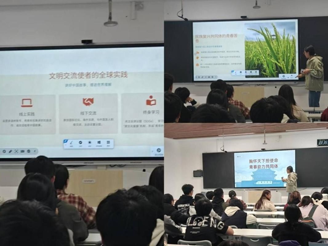 习近平总书记在金砖国家领导人峰会上的重要讲话,再次阐明了中国坚持多边主义、推动构建人类命运共同体的坚定立场。25新能源1班就此开展主题活动,团支书进行专题讲座帮助团员理解“百年未有之大变局”背景与人类命运共同体内涵,拓宽视野格局,之后班级分组讨论如何交出民族复兴共同体的青春答卷,为团员提供可落地的行动路径,推动团员将理论转化为助力共同体建设的实际行动。这也提醒各团支部应引导团员学习领会讲话中关于全球治理、开放合作的重要理念,思考中国与世界的关系,培养跨文化交流能力,在讲好中国故事、促进文明互鉴中展现青春风采,为推动建设一个更加美好的世界贡献中国青年的智慧和力量。