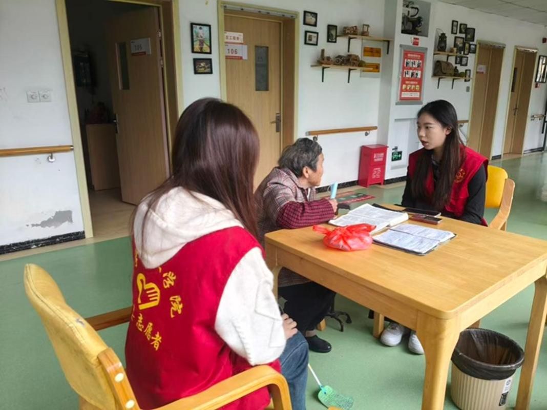 7时50分,志愿者们在一食堂一楼集合签到,身着统一志愿服,8时整乘公交车出发。抵达后,在活动负责人统筹下,志愿者们分工有序投入服务:与老人们亲切攀谈,倾听其过往经历,关切询问生活起居与健康状况,用真诚陪伴驱散孤独,让敬老院洋溢着欢声笑语。