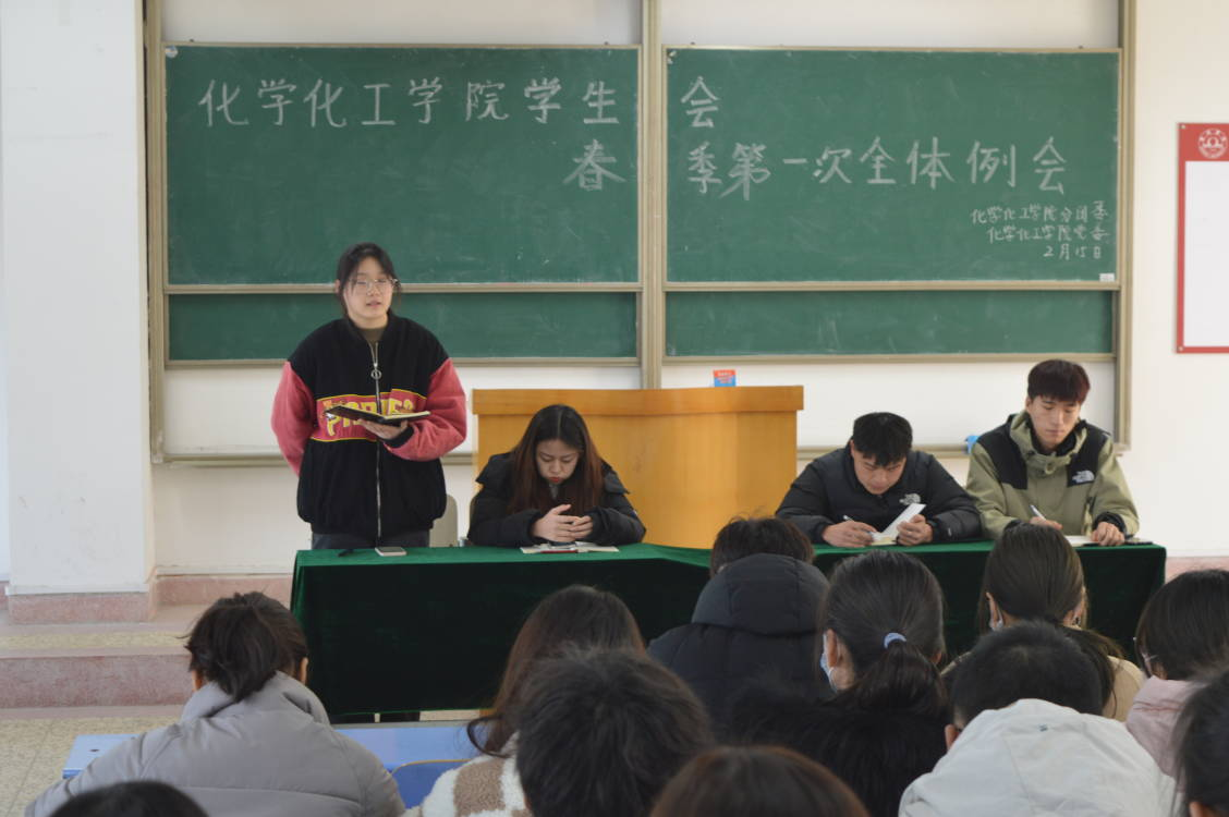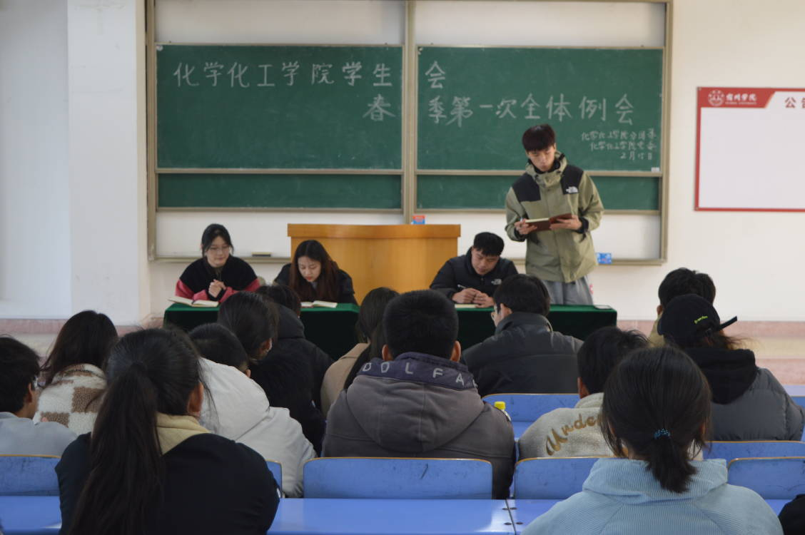 2月16日下午,化学化工学院于教学楼B201召开新学期学生会第一次全体例会。本次会议旨在总结假期工作,规划新学期活动安排,进一步增强学生干部贯彻落实党的二十大精神的责任担当,履职尽责,发挥先锋模范作用。团委书记阚淑锦及学生会全体成员参加。