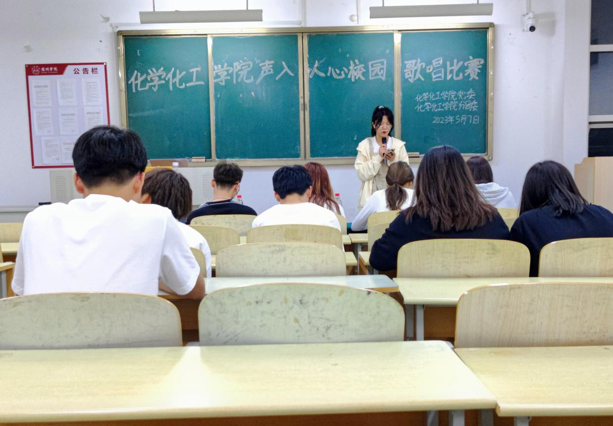 为丰富校园文化生活,营造积极向上、健康文明的校园文化氛围,化学化工学院于5月7日晚上在逸夫楼B301教室举办了“声入人心”校园歌唱比赛院内选拔赛。