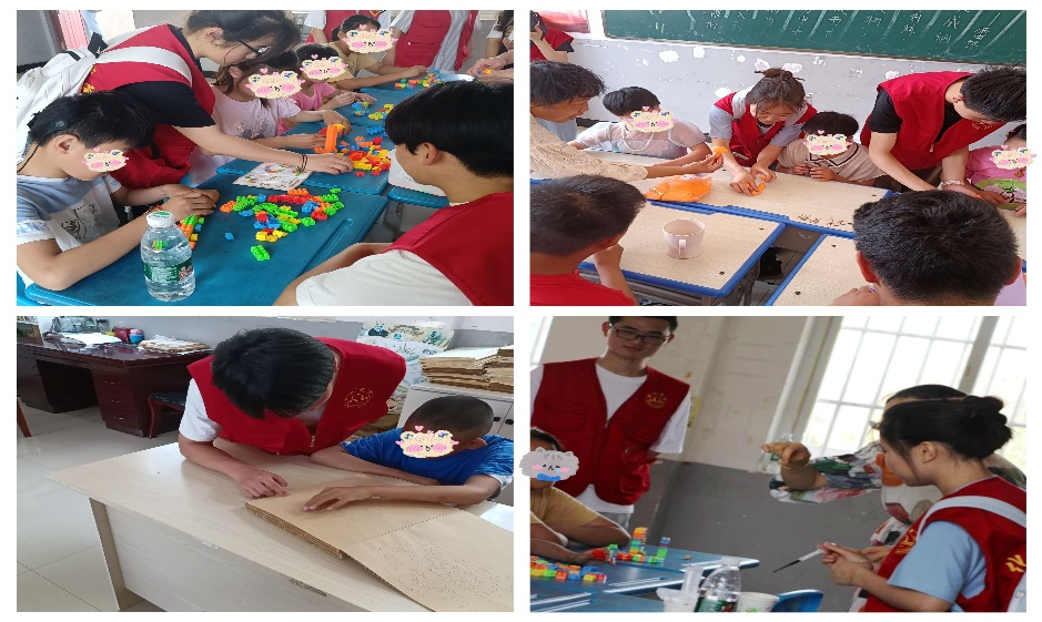7月6日至7月10日,实践团队提前和学校负责人联系并初步了解了辖区内未就学的残障学生的信息,在阚淑锦老师和特殊教育中心贺老师的带领下开展“送教上门”志愿活动,去往不同的学生家里进行拜访。实践团队成员带着折纸、粘土彩泥、拼搭积木、益智玩具等,带着他们寓教于乐,在学习中成长和完善自身。通过和家长、孩子们的沟通去了解他们真正需要的是什么,并提供有效的帮助,解决他们生活方面的困难以及心理方面的问题。