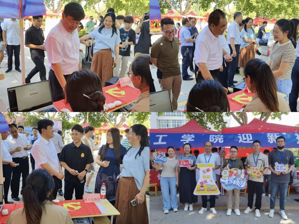 迎新期间,学校党委书记李红等一行校领导来到化学化工学院迎新接待点,指导化工学院迎新工作,慰问学院师生,亲切地与前来报到的同学和家长进行交流,倍感温暖。化工学院党委书记史洪伟,党委副书记、院长卓馨,副院长王聪、张克营等亲临现场组织迎新工作,充分发挥新进博士、党员、学生骨干榜样示范作用,协助2023级新生辅导员做好各项工作,大家以饱满的热情,贴心的志愿服务,真正做到以“心”迎新。