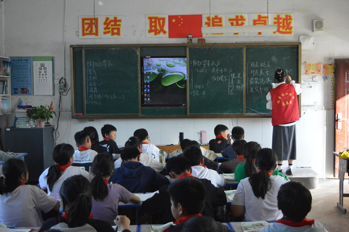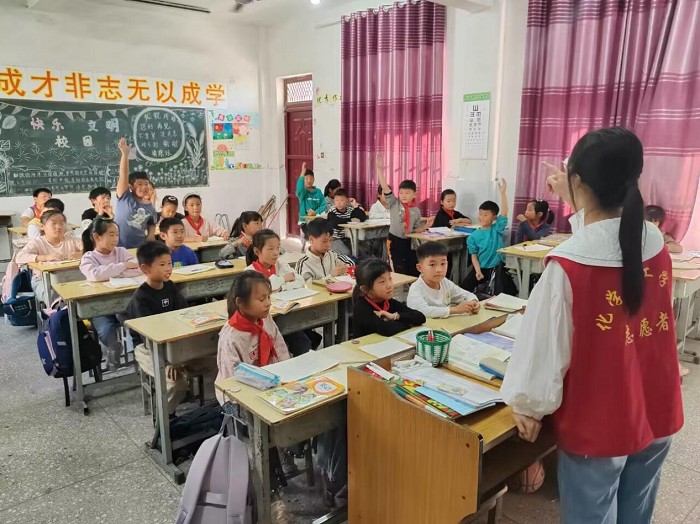 当志愿者到达学校时,孩子们蜂拥而至。大家逐渐被孩子们的热情与纯真所感染,同学们的支教热忱逐渐高涨,与孩子们的关系也逐渐融洽。本次支教从三年级到六年级,志愿者们按照课表进行英语、道德、科学、美术课程的教学。志愿者们灵活而有耐心,加上不失严肃的修正,教学效果逐渐显著。美术课上,志愿者们一边欣赏一边赞扬着孩子们画中天马行空的想象力。科学课和道德课上,志愿者们也各尽所长,用特色的教学方法向小朋友们传授知识。