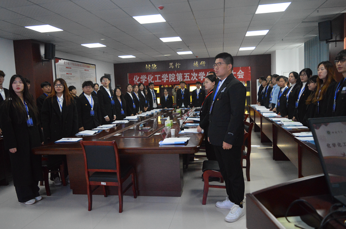 为认真落实团的十九大精神,全面落实学校第三次党代会决策部署,坚持立德树人根本任务,推进学生会组织改革,11月14日中午,化学化工学院第五次学生代表大会于实训楼会议室隆重召开。出席本次学生代表大会的有化学化工学院党委书记史洪伟,党委副书记、院长卓馨,党委副书记刘茜,副院长王聪和学生代表,大会由化学化工学院分团委负责人阚淑锦主持。