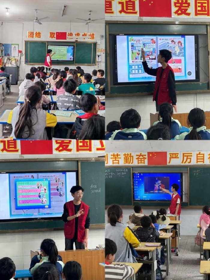 到达目的地后,志愿者们各自找到自己所报课程的教室,做好上课准备。美术课上,志愿者手把手的传授和分享自己所学到的绘画方法和技巧,同学们热情积极,充分发挥自己的想象力和创造力,将一幅幅作品呈现在了黑板上。英语课上,同学们热情地大声朗读课文,积极举手回答问题,在志愿者帮助下,同学们的发音得到了提升。课间时间,志愿者与孩子们玩在一起,有说有笑,建立了良好的友谊,志愿者认真负责的态度得到了学校老师的一致好评。