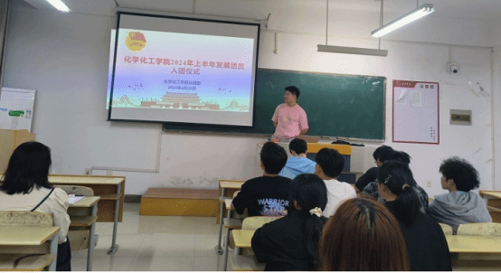 为贯彻落实团中央《关于加强新形势下发展团员和团员管理工作的意见》(中青发〔2016〕6号)和《2024年全省发展团员调控工作指引》的工作精神,按照校团委通知要求,为进一步做好2024年度团员发展工作,为团组织注入新鲜血液。2024年4月25日,化学化工学院分团委于逸夫楼b311举办2024年上半年新发展团员入团仪式。本次会议到场同学有2024年上半年全体新发展团员、2023级各班团支部书记和2022-2023学年院级五四红旗团支部书记贺晴,会议由学生分团委副书记王昌旭主持。