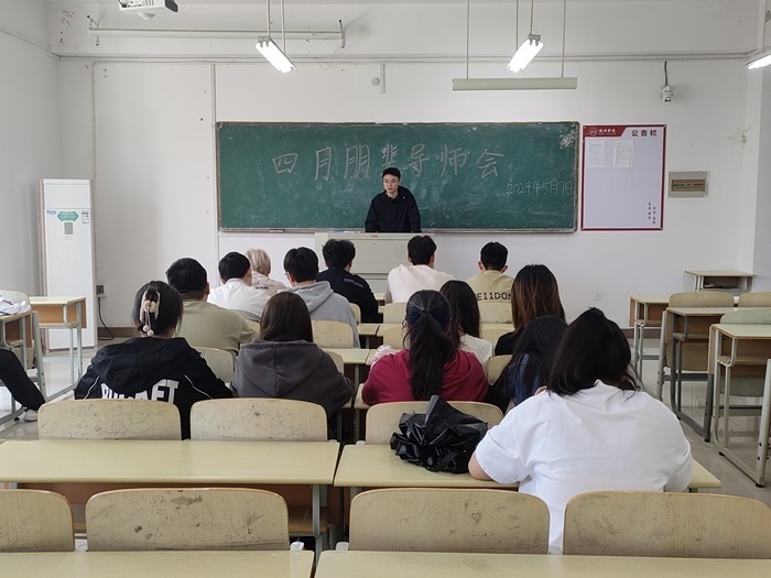 会议首先对近期朋辈导师的工作进行了总结,朋辈导师不仅在专业课上为同学们提供了详细的讲解和独到的见解,还非常关心同学们的日常生活和个人成长,经常与同学们分享大学生活的经验和心得,帮助同学们解决生活中的困惑和问题。随后,朱程锋对朋辈导师的工作提出建议,一要成为学生们的学习榜样,引导和帮助同学们激发学习积极性,营造比、学、赶、超的学习氛围;二要成为学生的知心朋友,了解同学们的真实情况与想法,协助辅导员老师更好的解决学生的困难。