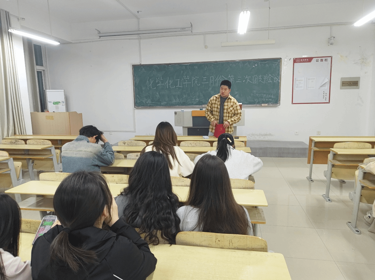 为扎实推进我院2023至2024学年度“两红两优”评选表彰工作,强化基层团组织凝聚力和引领力,化学化工学院分团委于3月25日晚在逸夫楼B310组织召开团支书工作例会,各班团支部书记、副书记参加会议。