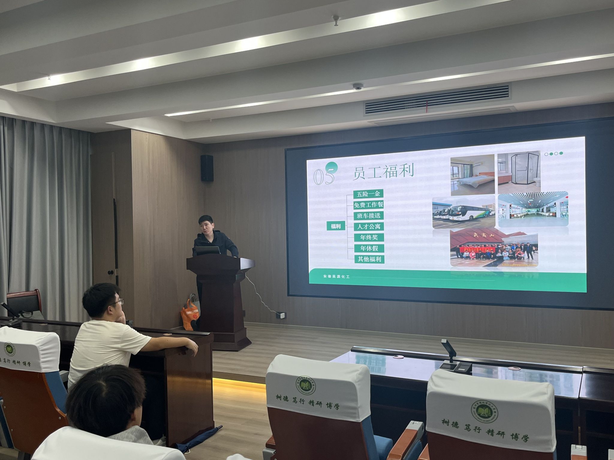 10月15日,安徽昊源化工集团有限公司走进宿州学院化学化工学院,举办专场招聘宣讲会。