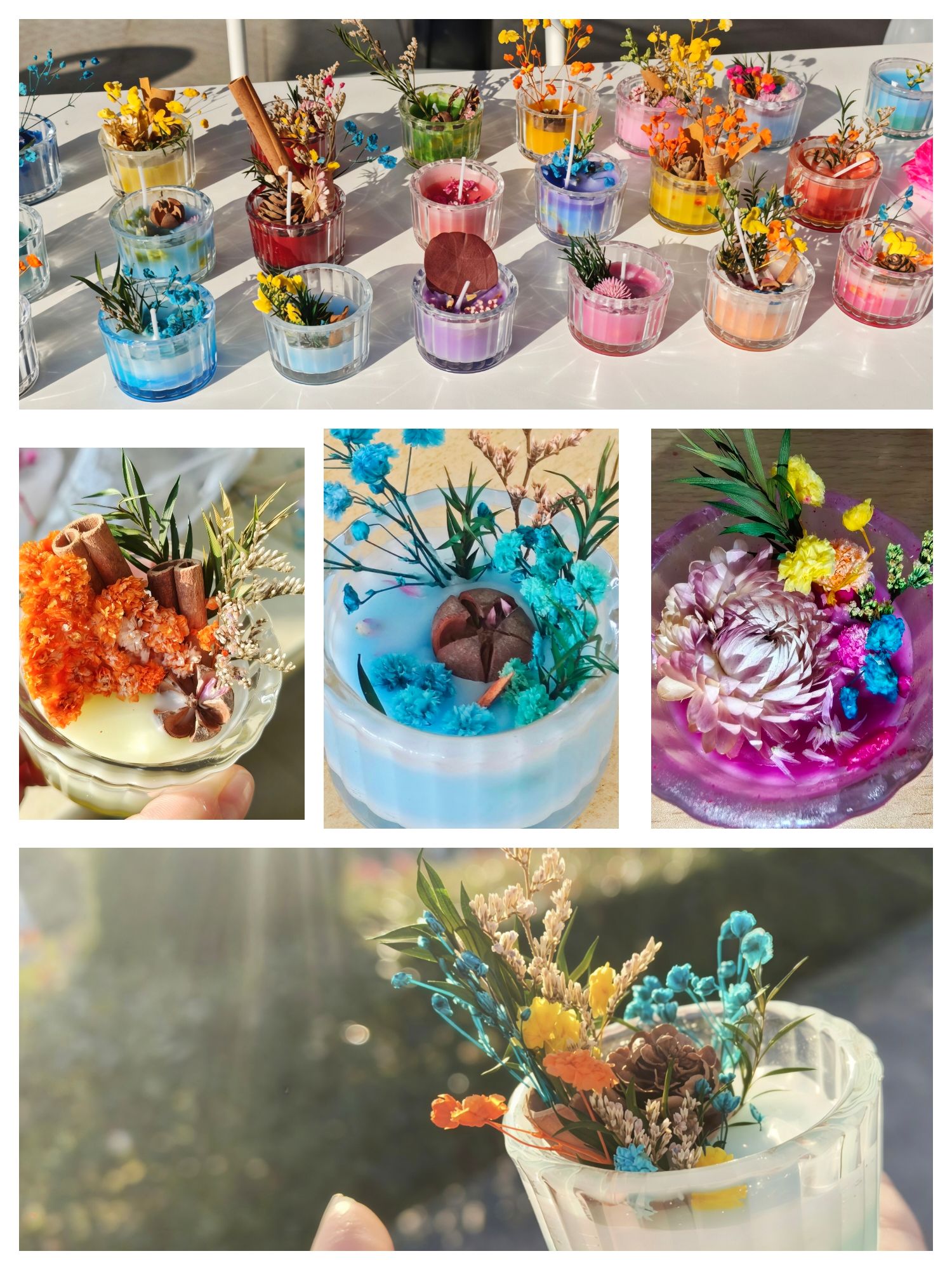 在“科学创作+心理赋能”的双重指导下,参与者全程沉浸式体验从原料称重、蜡液调配到香气融合、干花装饰的完整流程。化工坊技术人员实时指导温度控制、精油添加比例等细节,确保作品成型效果;心理老师则通过正念引导,让参与者在专注搅拌、等待凝固的过程中,觉察自身情绪流动,完成与自我的深度对话,在创作中实现“直面压力—动手转化—正向赋能”的疗愈闭环。