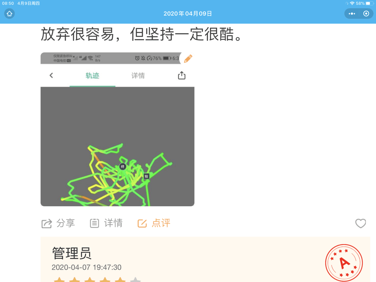 活动方式是在网络上进行,在线“学习打卡”,“健身打卡”,或“疫情感悟打卡”,化工学院团总支利用微信公众号,发布通知,建立平台,让同学能够及时有效的进行打卡。这次活动得到的很多学生的一致好评,有些学生说自己自律差正好借助这次活动好好的锻炼自己,有的学生则在这次活动中感受到疫情在前,重任在肩每个人都是与病毒抗争的勇士,感受到团结的力量,记得这次活动中有同学打卡留言到这样一句话“放弃很容易,但坚持一定很酷”,没有人天生就有坚持的勇气,一定是有人在背后为你竖起了大拇指,这次疫情中国打赢了上半场,相信这下半场也一定能赢。