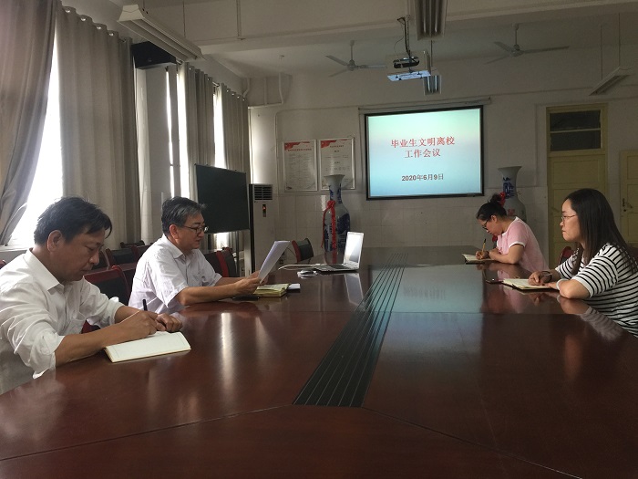会上,徐基贵宣读了学校《关于做好2020届毕业生文明离校工作的通知》,对2020年毕业生文明离校工作进行了具体安排。