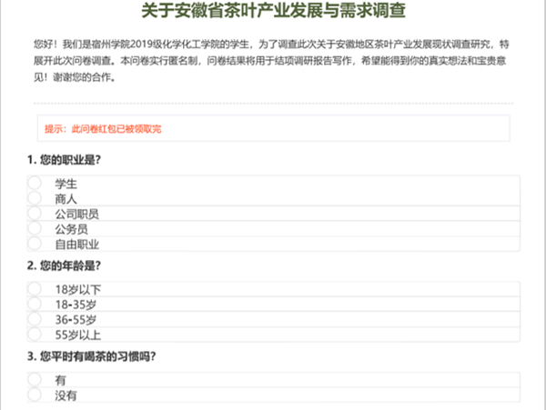 7月15日晚,“徽茶知物”团队小组进行第一次线上会议,布置团队成员各项相关任务,小组成员之间密切配合,积极筹备本次云调研活动的开展。之后,小组成员积极发布线上关于安徽省茶叶产业发展与需求的问卷,线下由小组队长在岳西县当地进行随机抽样调查,走访当地生态茶园及相关茶叶商铺。在此期间,成员们发现当地居民对于茶叶发展的重视程度之深,大家也从中了解到了许多关于茶叶的文化知识。最终小组成员共同整理相关问卷数据及访谈内容,并完成本次线上云调研的调研报告撰写。