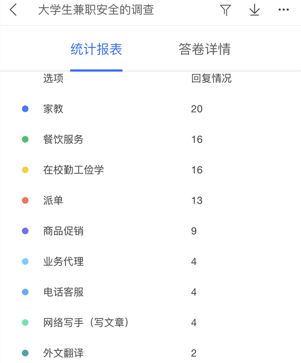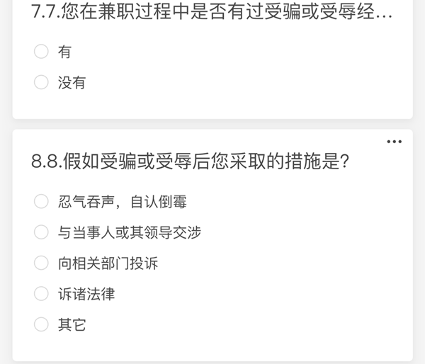 通过这次调研活动,我们了解到大学生对于兼职的了解程度以及他们的看法,我们希望可以通过这次活动,大家对兼职的安全性能有一定程度的了解,在兼职的同时可以保护好自身安全。