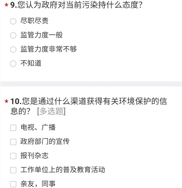 这次实践,我们采取的是线上问卷调查的方式来进一步了解化工对我们生活的影响,因为这种调查可以了解现阶段污染治理方法和方向。根据对大家的调查,化工的污染涉及到很多方面,这些对人们的生活有很大的威胁,人们在不知不觉中处于亚健康状态。这些污染的源头是一些生产、加工过程中原料、半成品、废料造成的。与此同时,政府及有关部门在环境治理方面也有着大力监控,保证了人民的健康安全。