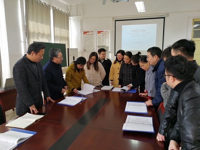 按照《关于开展2020-2021学年度第一学期“教师课堂教学能力提升”活动的通知 》(教务处发〔2020〕64号)要求,化工学院应化与新能源教研室和化工技术教研室根据学院“教案评比”活动方案,于11月20日中午在学院会议室开展了“教案评比”和“优秀教案观摩” 活动。