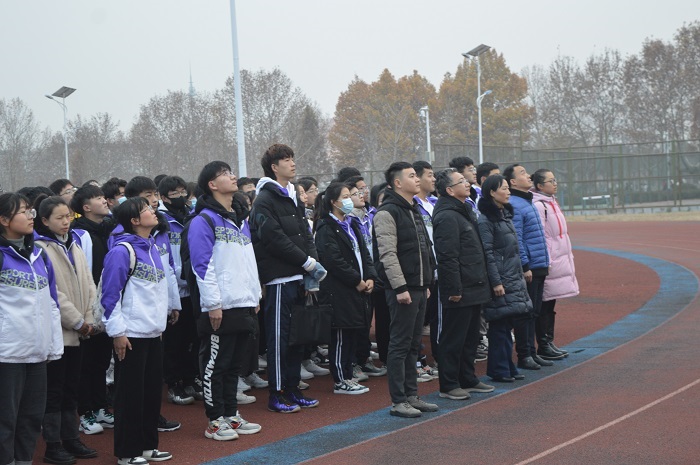 7点30分,伴着清晨薄薄雾气,同学们身穿校服,在操场北侧整齐排列。在升旗仪式举行之前,徐基贵进行了讲话,慷慨激扬的话语激发了同学们积极向上的动力。随后国旗护卫队的队员们以整齐划一的步伐,铿锵有力的声音护送鲜艳的五星红旗进场。行礼完毕,伴随着激昂的《义勇军进行曲》,升旗手振臂一挥,鲜艳的五星红旗徐徐展开,随风飘扬。在场的每位师生都向着国旗行注目礼,满怀着对祖国的热忱敬意。升旗仪式圆满结束,同学们井然有序的离开田径场。
