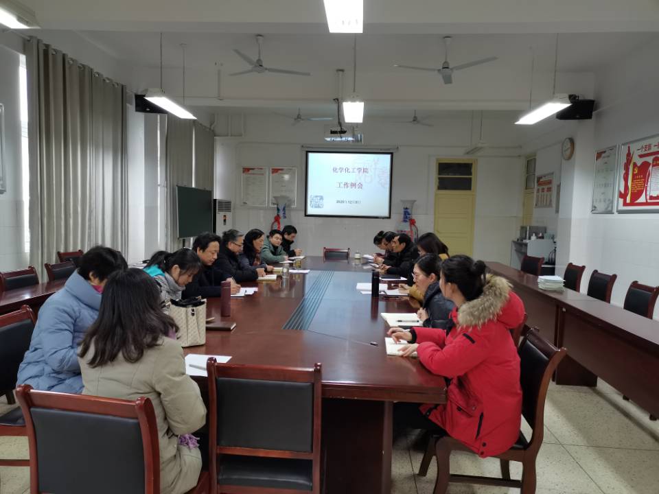 2020年12月9日下午14:40,化学化工学院在会议室召开工作例会,会议由化工学院院长王红艳主持,全体教职工参加会议。