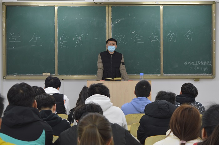 为确保新学期学生工作的有序展开,争取做到继往开来,力创新高。3月19日下午一点,化学化工学院在逸夫楼B301召开学生会全体会议,化学化工学院卞振涛老师参加会议进行主要讲话。
