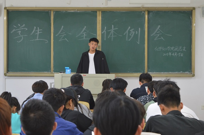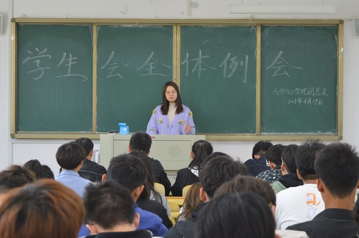为了加强学生会的规章制度,协调好各部门工作,努力构建积极健康的学生会工作环境。我校化学化工学院于2021年4月19日下午13:00在逸夫楼B201召开了学生会全体会议。此次会议由化学化工学院阚淑锦老师进行主要讲话,学生会全体学生干部参加了此次会议。