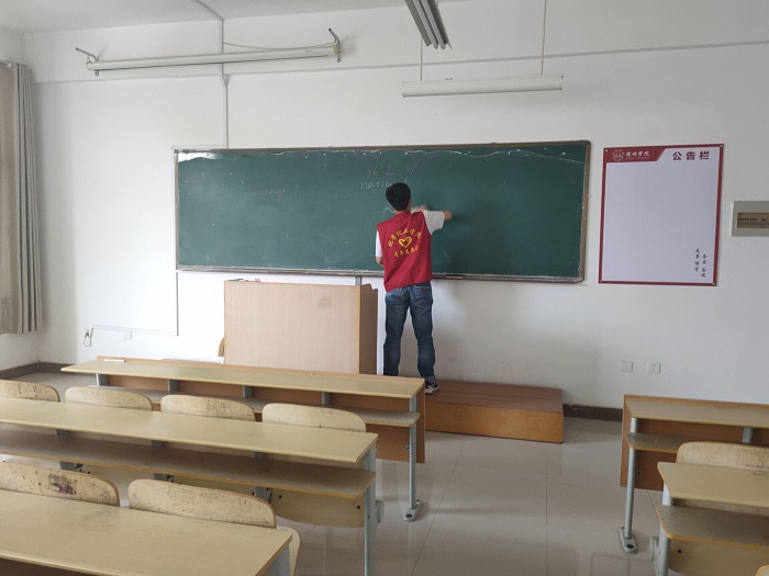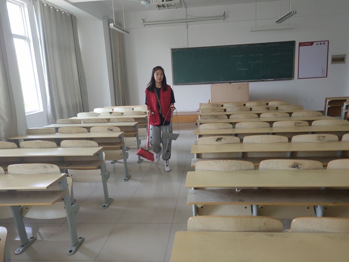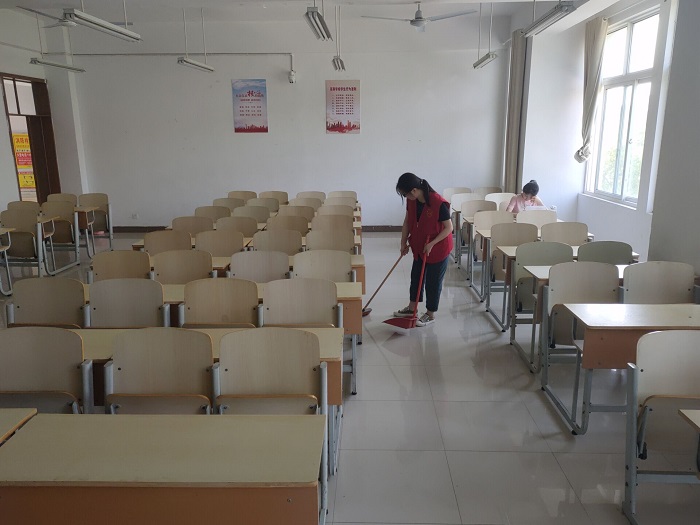 活动开始,参加人员先进行了明确的分工,有的打扫教室、有的打扫走廊、有的打水、有的擦窗,大家充分发扬了不怕苦、不怕脏的精神,不放过任何一个卫生死角,每位同学都忙的不亦乐乎。在活动过程中,同学们聚精会神、互相帮助。志愿者们自告奋勇到各教室打扫卫生,包括地面垃圾和桌洞垃圾,为同学们的上课制造了良好的学习环境。活动结束后,相关负责人对本次活动进行了检查,并且要求志愿活动完全结束后并随手带走扔进垃圾桶。